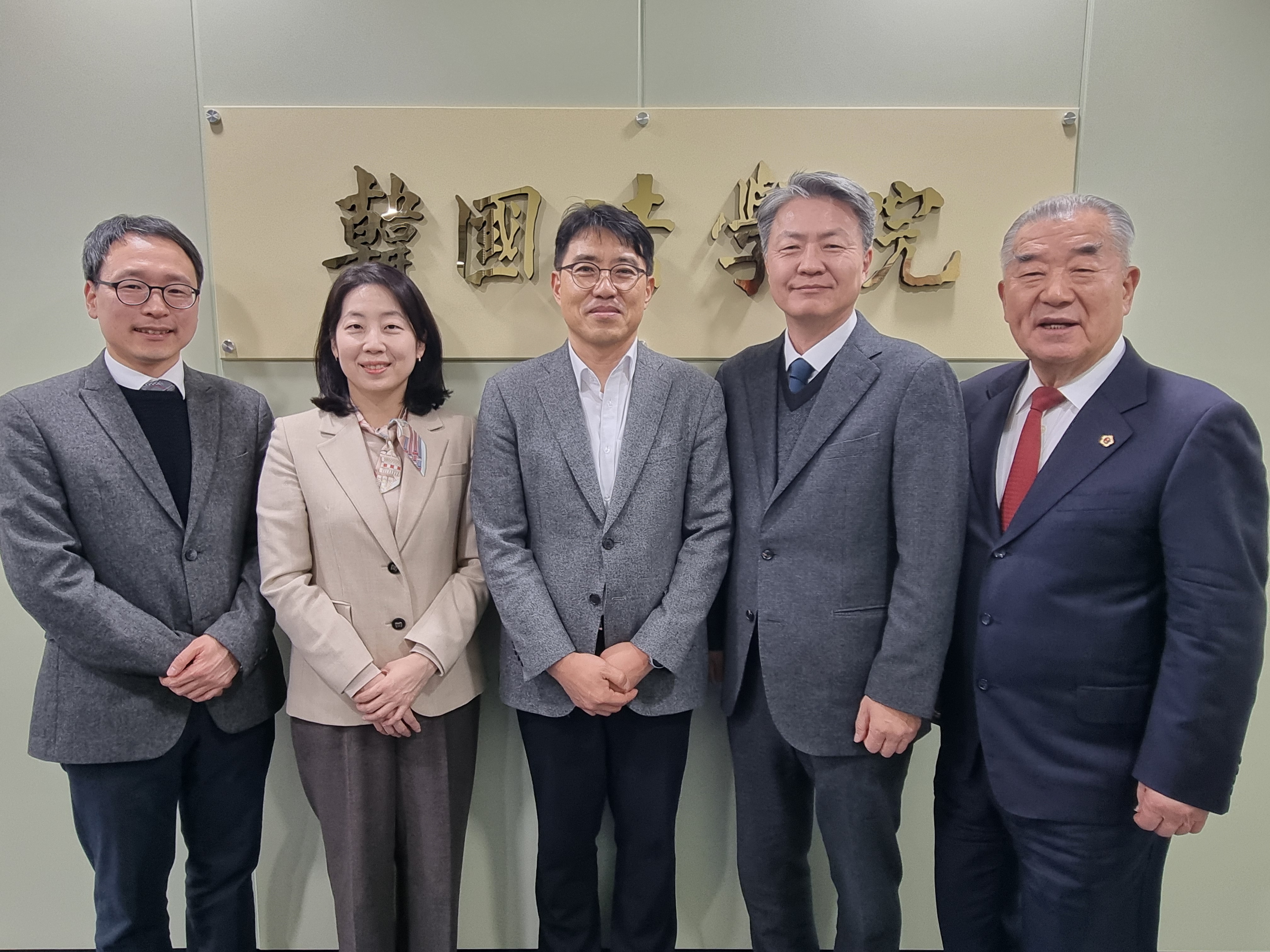 사진 왼쪽부터 이상훈 사무차장(서울대 법전원 교수), 김진 사무차장(경희대 법전원 교수), 윤태영 부회장(아주대 법전원 교수), 최봉경 한국법학교수회장(서울대 법전원 교수), 이기수 한국법학원장
